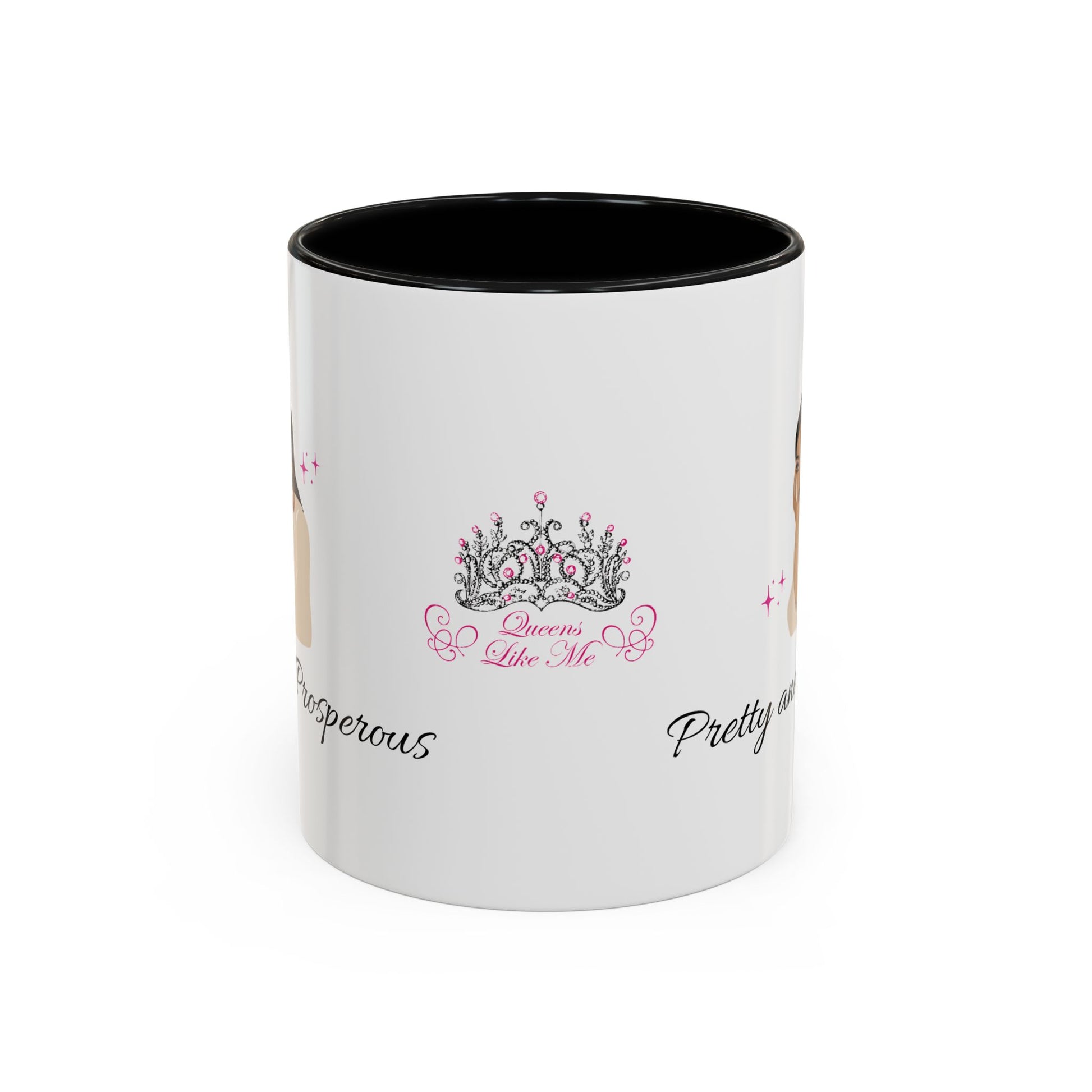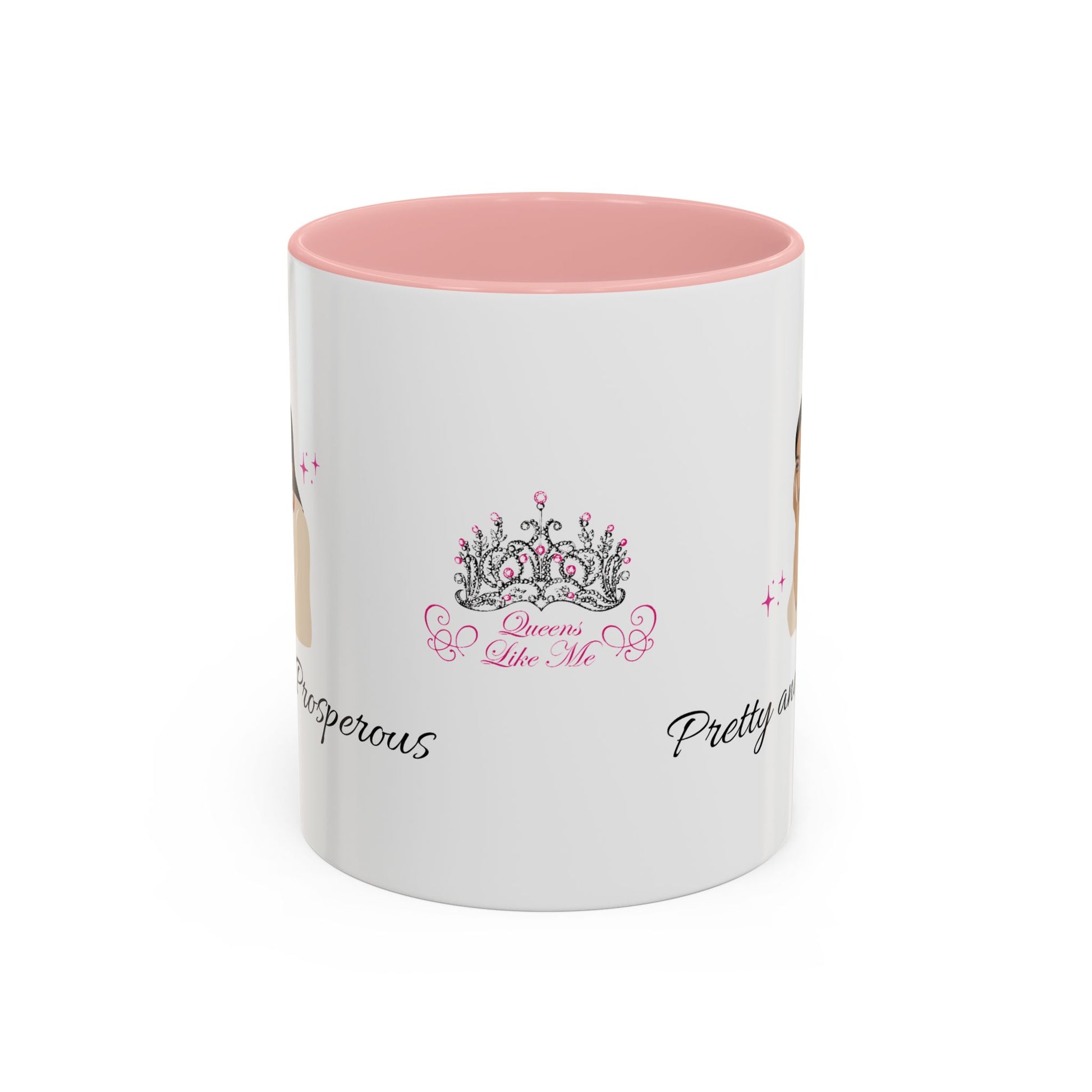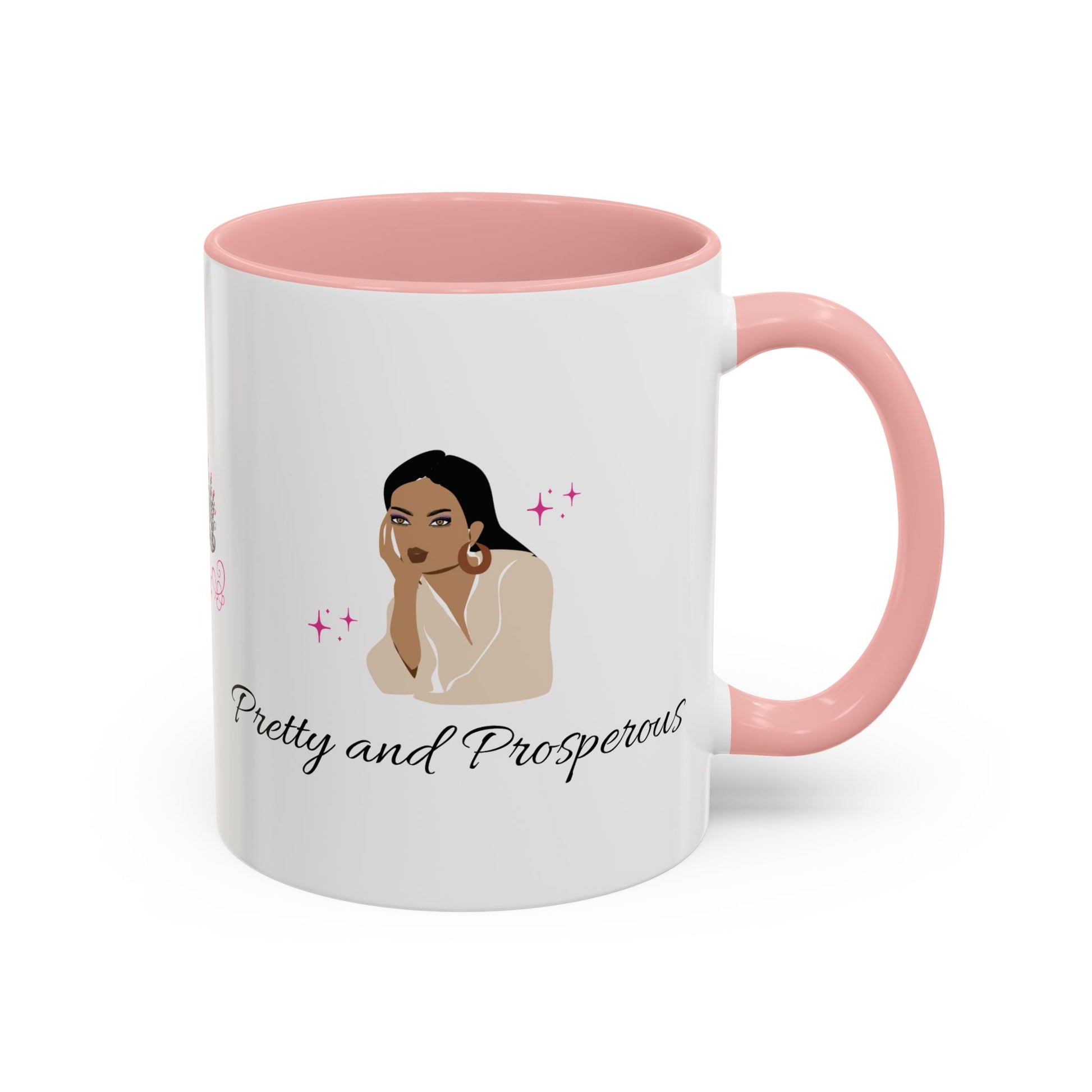 Add some color to your routine with this two-tone, custom accent coffee mug reminding you that you are both pretty and prosperous. At 11oz, this mug is perfect for your morning coffee or tea but also for affirming you.